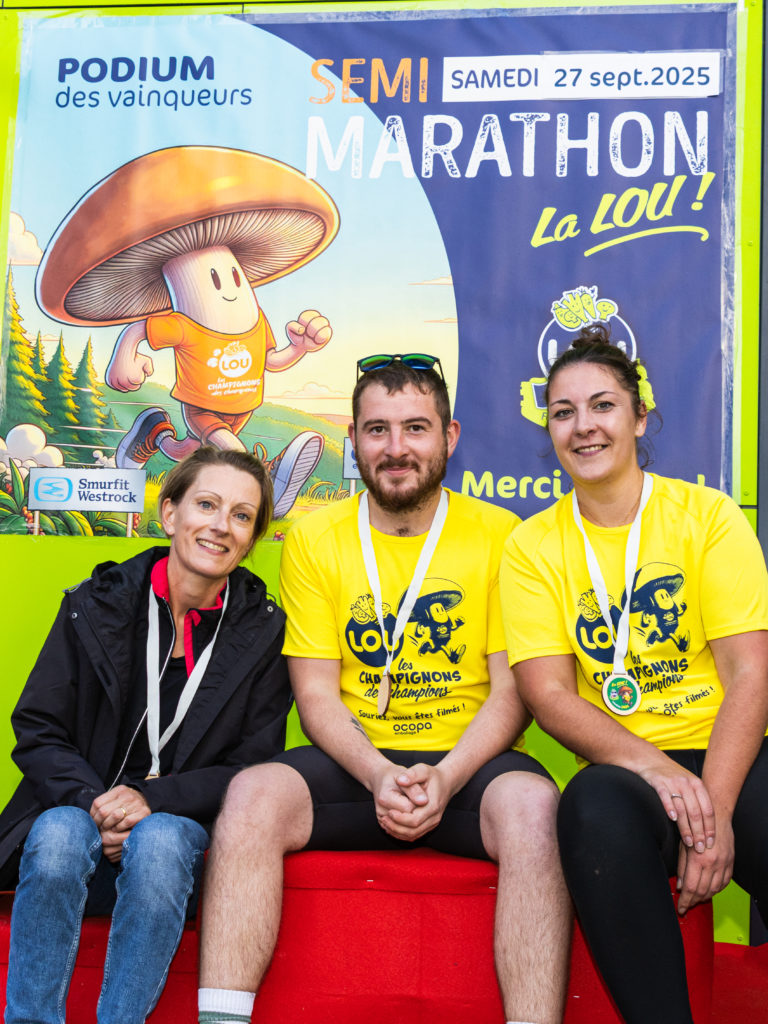 Le semi-marathon a aussi pris une dimension solidaire : une partie des inscriptions a été reversée à l’association « Des étoiles dans la mer », qui soutient la recherche médicale et les familles touchées par le glioblastome. Cette cause nous tient particulièrement à cœur, notamment grâce à Clarisse, présente lors d’une précédente édition de notre semi-marathon La LOU.