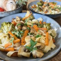 Tagliatelles aux petits légumes et champignons LOU